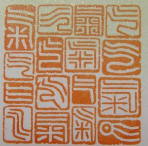 氣の文字を、4㎝角の中に16文字を刻印しました。