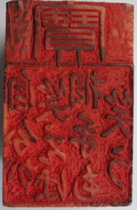 篆刻で大きな印材 縦・8㎝ 横・5㎝に印刻しました。。